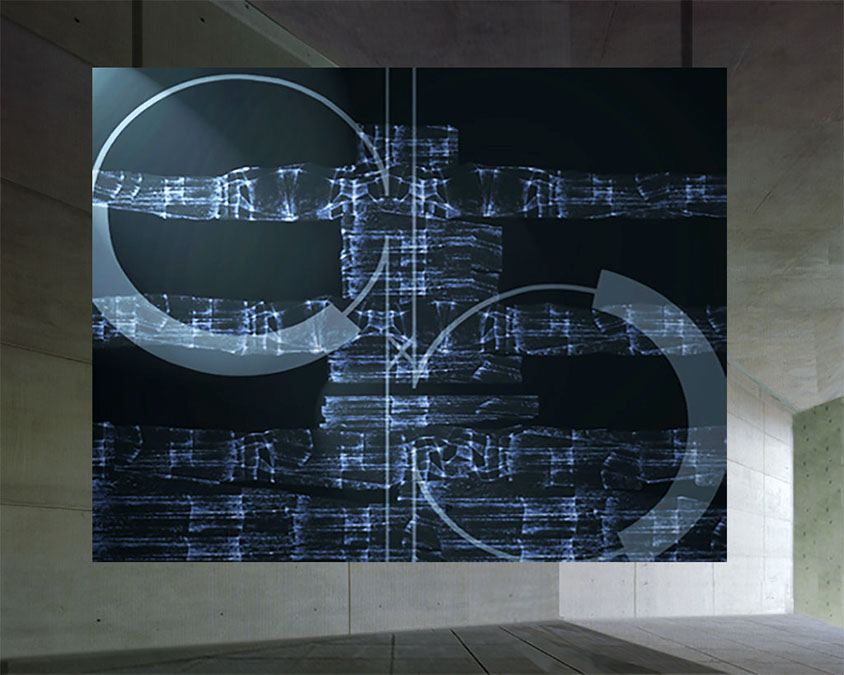 This artwork shows genetic technology`s potential of being able to determine the individual in the future. The schematic sign "of crossing over" contrasts an archaic figure."Crossing Over" is a plea for the preservation of individuality.